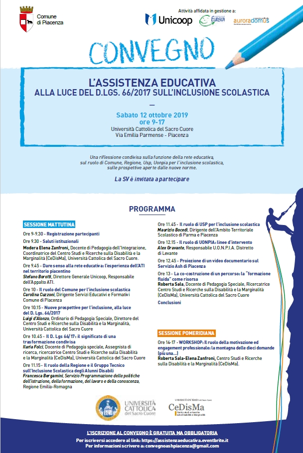 L'associazione temporanea di imprese Auroradomus-Eureka-Unicoop insieme al Comune di Piacenza e all'Università Cattolica del Sacro Cuore, organizza Sabato 12 Ottobre dalle ore 9 alle ore 17, presso L'Universita Cattolica del sacro Cuore, un importante convegno su une tema quanto mai attuale nel mondo dei servizi alla persona anche in relazione alle recenti novità normative sul settore che sono state introdotte.